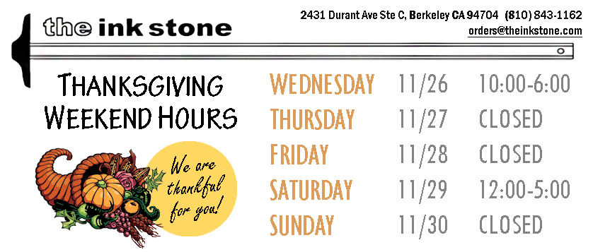 The Ink Stone has moved to a new location on Durant Avenue a few blocks from our old location. We are in Sather Lane, a covered alleyway off of Durant Ave.